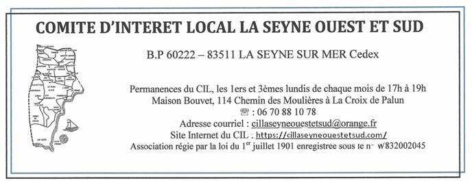 1 – Entrevue avec Mme le Maire le 4 avril : Faisant suite à notre demande, Mme le Maire nous a invités pour examiner quelques points importants qui concernent notre secteur. Mme GUES, adjointe de quartier Ouest, M. BECCARIA, adjoint référent aux CIL, M. PEURIERE, adjoint de quartier Sud, M. BURTE, DGST, M. PACARIN, DGST Directeur d’antenne MTPM pour La Seyne, étaient présents et ont pu chacun argumenter les réponses aux questions qui les concernaient.